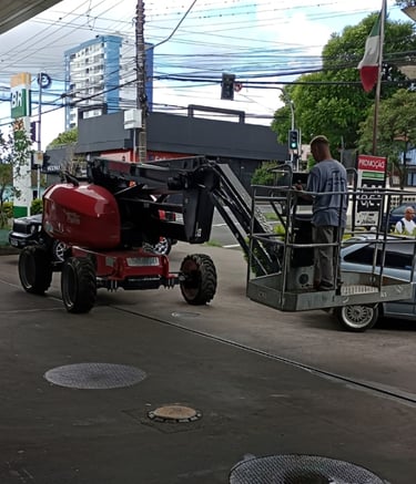 Plataformas elevatórias em ação, mostrando robustez.